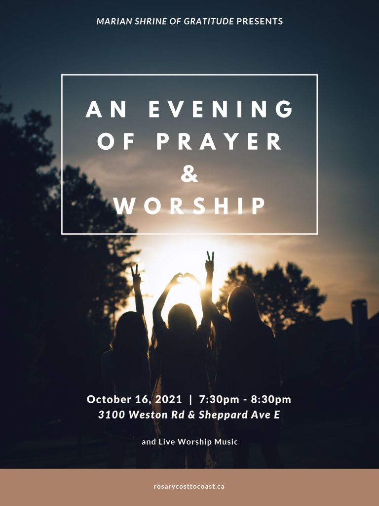 Topic: An Evening Of Worship by Rosary Coast To Coast CanadaTime: Oct 16, 2021 07:30 PM Eastern Standard TimeJoin Zoom Meetinghttps://us02web.zoom.us/j/3731333108Meeting ID: 373 133 3108 With the support of Bishop Tremblay of Trios-Rivieres, Quebec. Like Loading...